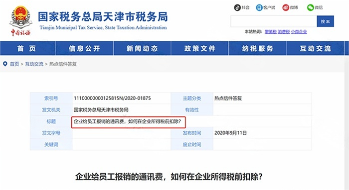 税务局答复:如果是报销与企业取得收入直接相关的通讯费支出(即因公通讯费,需要证明),可以凭开给个人的发票税前扣除。如果是按职工福利发放,按福利费规定扣除。